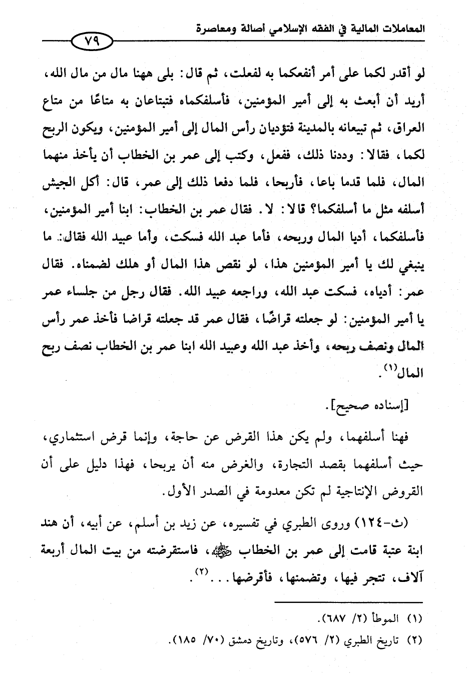 (ث-١٢٤) وروى الطبري في تفسيره، عن زيد بن أسلم، عن أبيه، أن هند ابنة عتبة قامت إلى عمر بن الخطاب - رضي الله عنه -، فاستقرضته من بيت المال أربعة آلاف، تتجر فيها، وتضمنها، فأقرضها ... (¬٢).