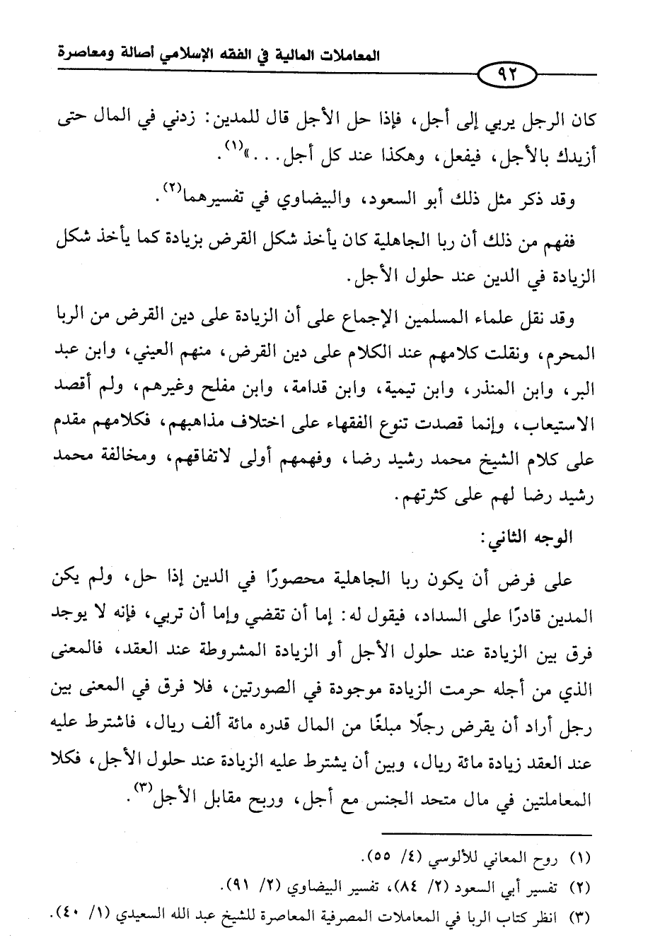 (¬٣) انظر كتاب الربا في المعاملات المصرفية المعاصرة للشيخ عبد الله السعيدي (١/ ٤٠).