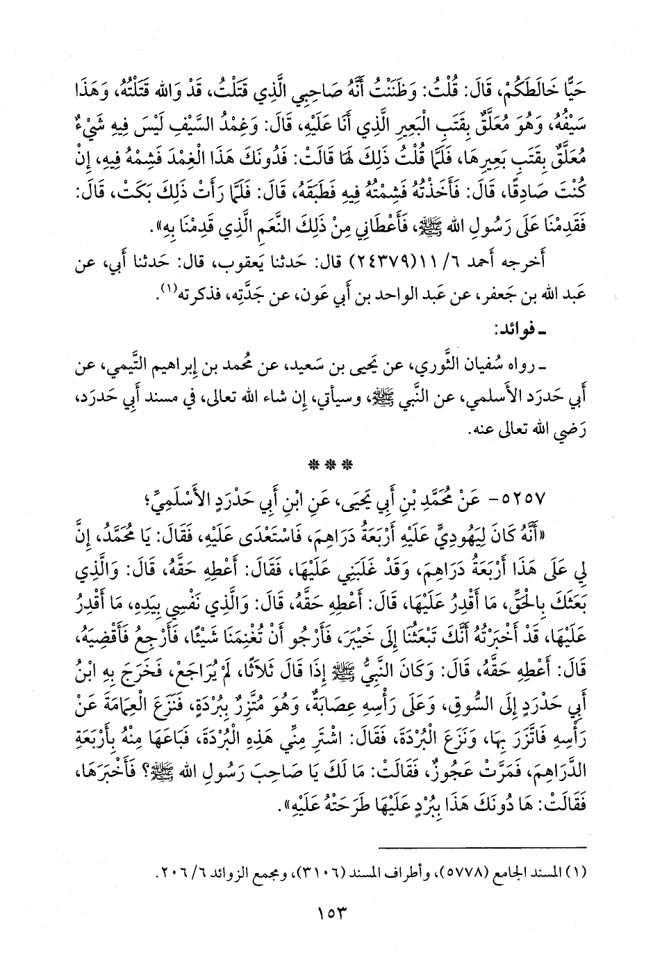 (¬١) المسند الجامع (٥٧٧٨ و ١٥٣٨١)، وأطراف المسند (٣١٠٧)، ومَجمَع الزوائد ٤/ ١٢٩.