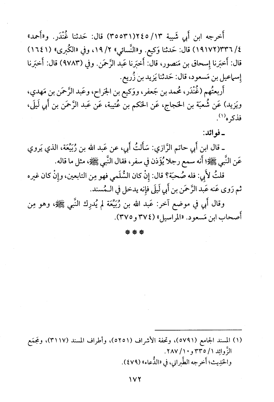 وقال أبي في موضع آخر: عبد الله بن ربيعة لم يدرك النبي صَلى الله عَليه وسَلم وهو من أصحاب ابن مسعود. «المراسيل» (٣٧٤ و ٣٧٥).