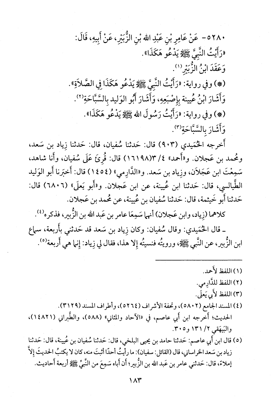 ـ قال الحميدي: وقال سفيان: وكان زياد بن سعد قد حدثني بأربعة، سماع ابن الزبير، عن النبي صَلى الله عَليه وسَلم ورويته فنسيته إلا هذا، فقال لي زياد: إنما هي أربعة (¬١).