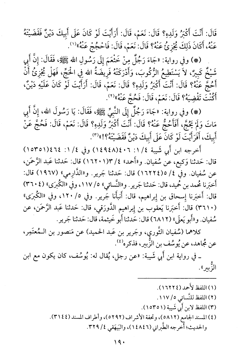 أخرجه ابن أبي شيبة (١٤٩٤٨ و ١٥٣٥١) قال: حدثنا وكيع، عن سفيان. و «أحمد» ٤/ ٣ (١٦٢٠١) قال: حدثنا عبد الرَّحمَن، عن سفيان. وفي ٤/ ٥ (١٦٢٢٤) قال: حدثنا جَرير. و «الدَّارِمي» (١٩٦٧) قال: أخبرنا محمد بن حميد، قال: حدثنا جَرير. و «النَّسَائي» ٥/ ١١٧، وفي «الكبرى» (٣٦٠٤) قال: أخبرنا إسحاق بن إبراهيم، قال: أنبأنا جرير. وفي ٥/ ١٢٠، وفي «الكبرى» (٣٦١٠) قال: أخبرنا يعقوب بن إبراهيم الدورقي، قال: حدثنا عبد الرَّحمَن، عن سفيان. و «أَبو يَعلى» (٦٨١٢) قال: حدثنا أَبو خيثمة، قال: حدثنا جَرير.