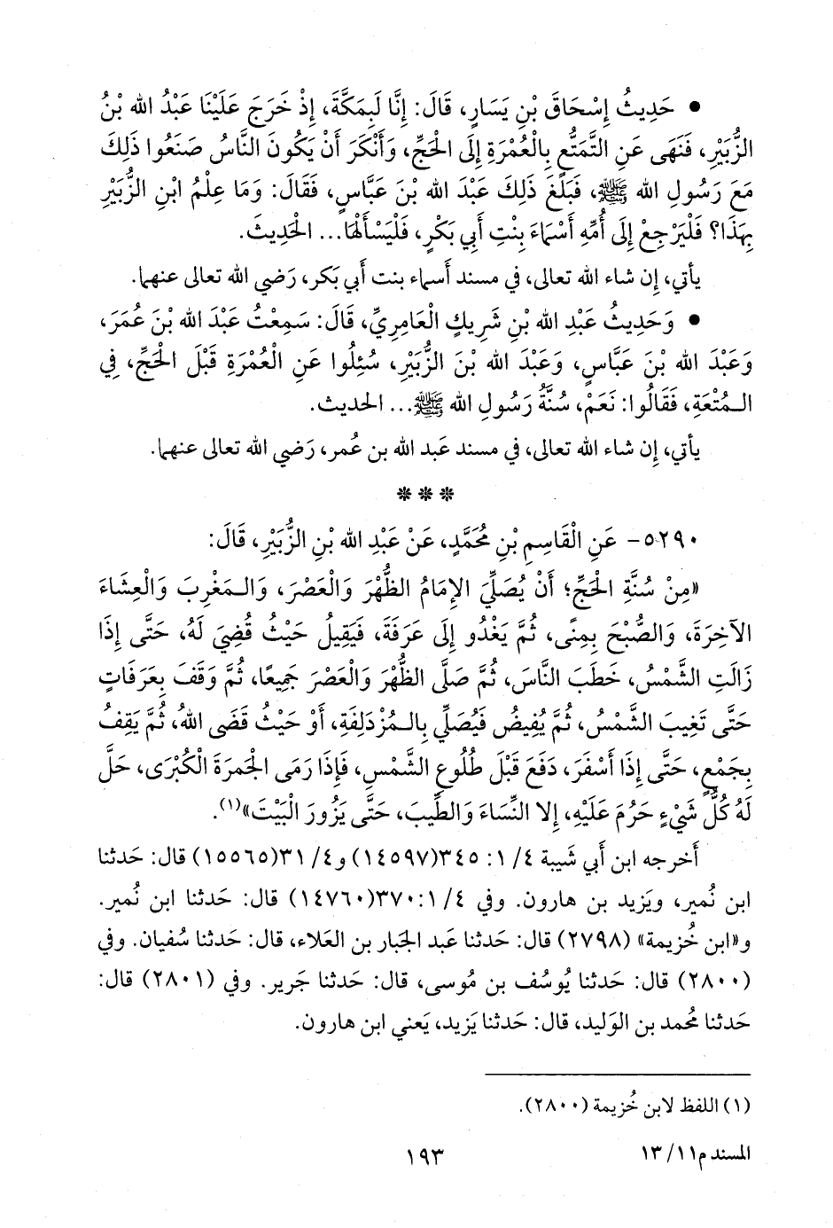 - وحديث عبد الله بن شريك العامري، قال: سمعت عبد الله بن عمر، وعبد الله بن عباس، وعبد الله بن الزبير، سئلوا عن العمرة قبل الحج، في المتعة، فقالوا: نعم، سنة رسول الله صَلى الله عَليه وسَلم، الحديث.