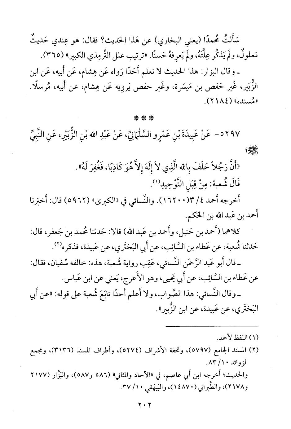 ٥٢٩٧ - عن عبيدة بن عَمرو السلماني، عن عبد الله بن الزبير، عن النبي صَلى الله عَليه وسَلم؛