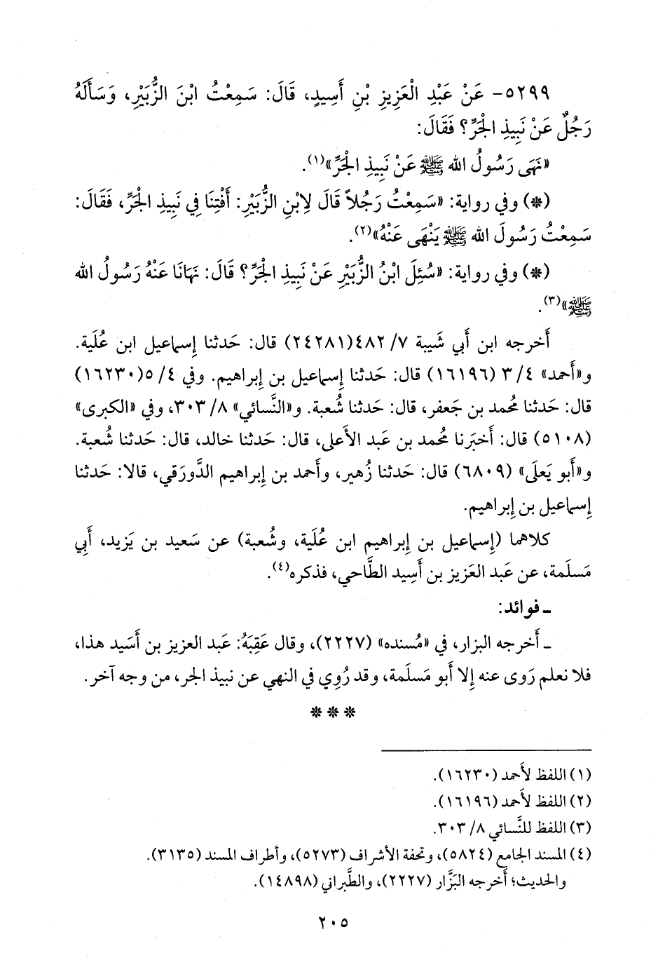٥٢٩٩ - عن عبد العزيز بن أسيد، قال: سمعت ابن الزبير، وسأله رجل عن نبيذ الجر؟ فقال: