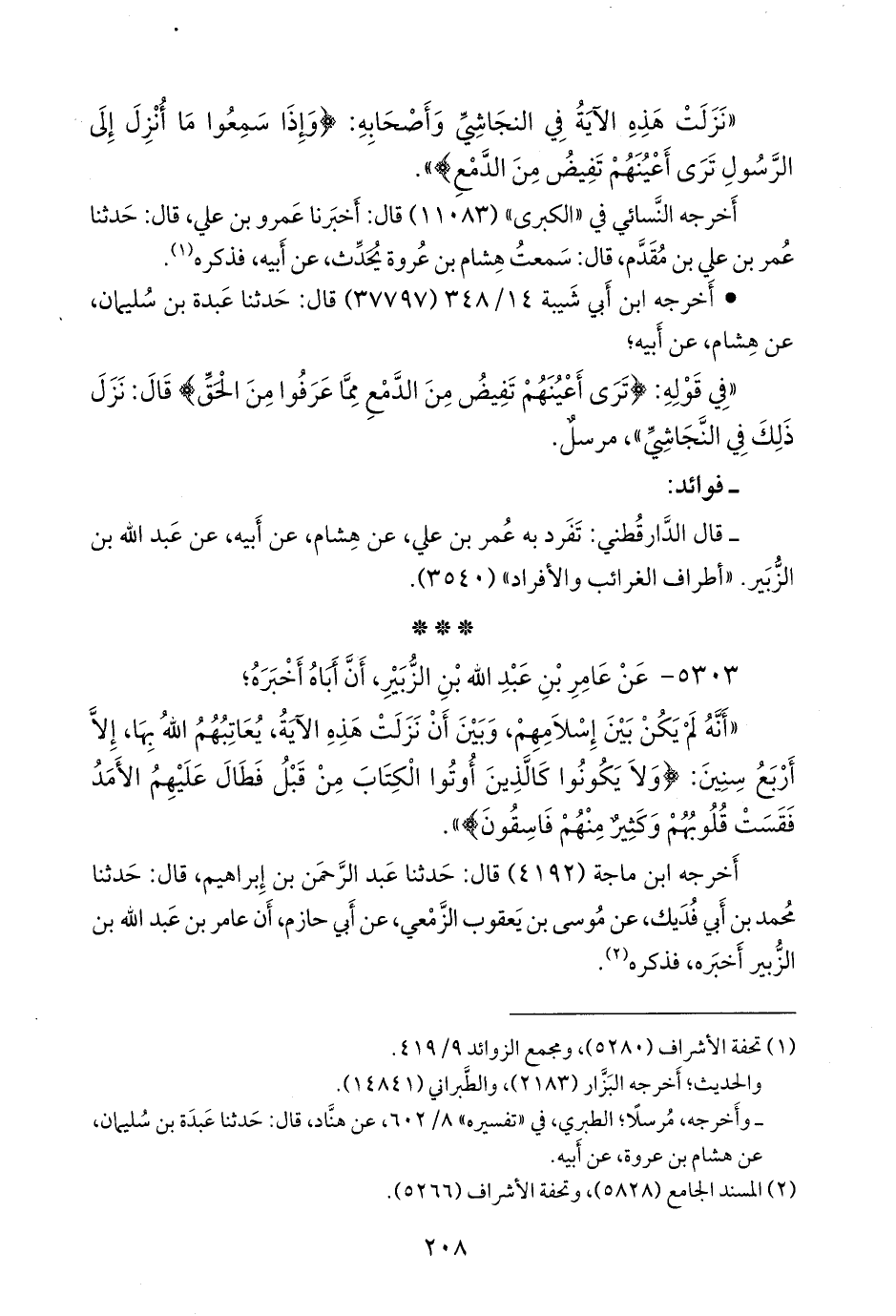 - قال الدارقُطني: تَفرَّد به عمر بن علي، عن هشام، عن أَبيه، عن عبد الله بن الزبير. «أطراف الغرائب والأفراد» (٣٥٤٠).
