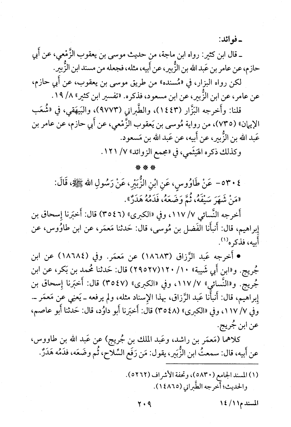 قلنا: وأخرجه البزار (١٤٤٣)، والطبراني (٩٧٧٣)، والبيهقي في «شعب الإيمان» (٧٣٥)، من رواية موسى بن يعقوب الزمعي، عن أبي حازم، عن عامر بن عبد الله بن الزبير، عن أبيه، عن عبد الله بن مسعود.