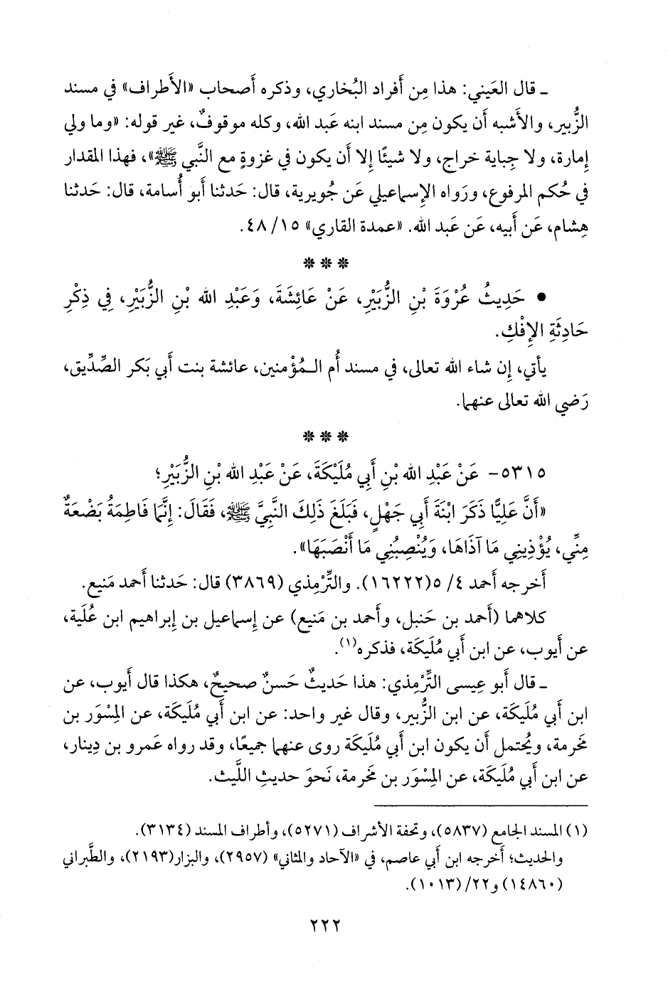 ٥٣١٥ - عن عبد الله بن أَبي مُليكة، عن عبد الله بن الزبير؛
