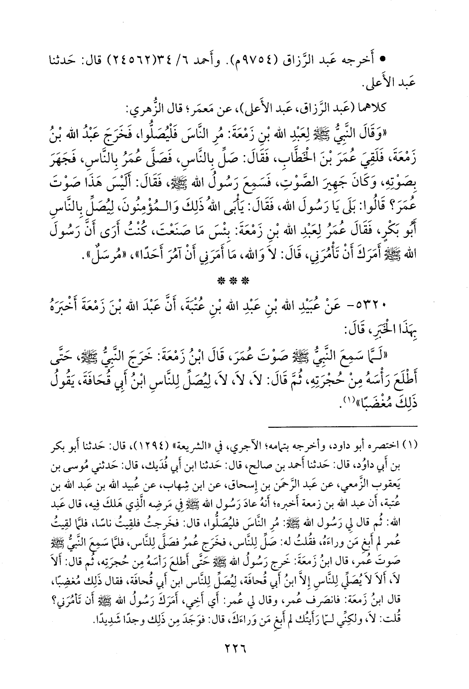 ٥٣٢٠ - عن عُبيد الله بن عبد الله بن عُتبة، أن عبد الله بن زمعة أخبره بهذا الخبر، قال: