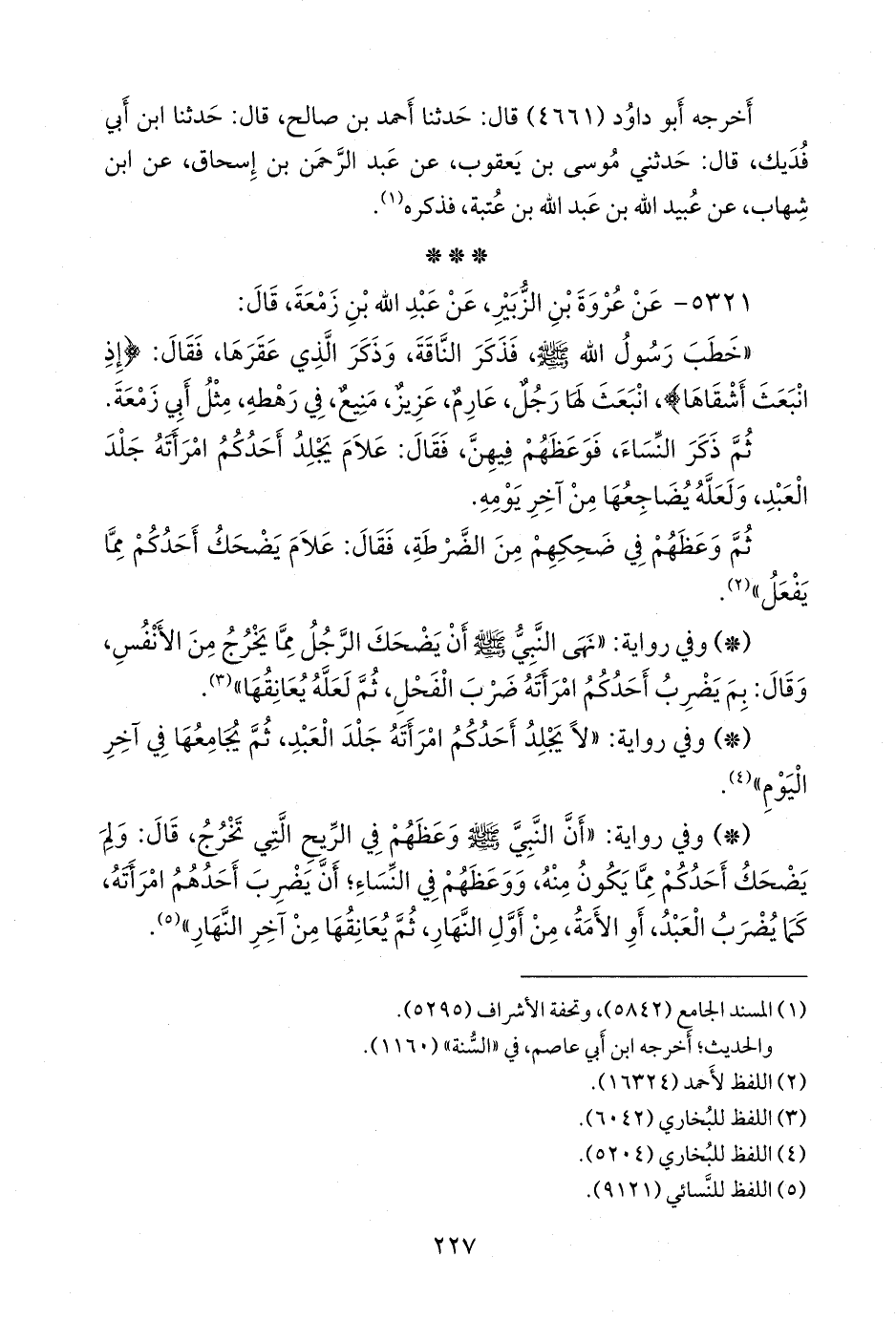 ٥٣٢١ - عن عروة بن الزبير، عن عبد الله بن زمعة، قال: