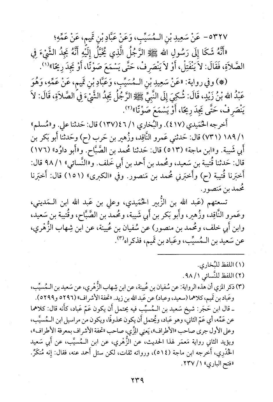 تسعتهم (عبد الله بن الزبير الحميدي، وعلي بن عبد الله ابن المديني، وعَمرو الناقد، وزهير، وأَبو بكر بن أبي شيبة، ومحمد بن الصباح، وقتيبة بن سعيد، وابن أبي خلف، ومحمد بن منصور) عن سفيان بن عُيينة، عن ابن شهاب الزُّهْري، عن سعيد بن المُسَيب، وعباد بن تميم، فذكراه (¬٣).