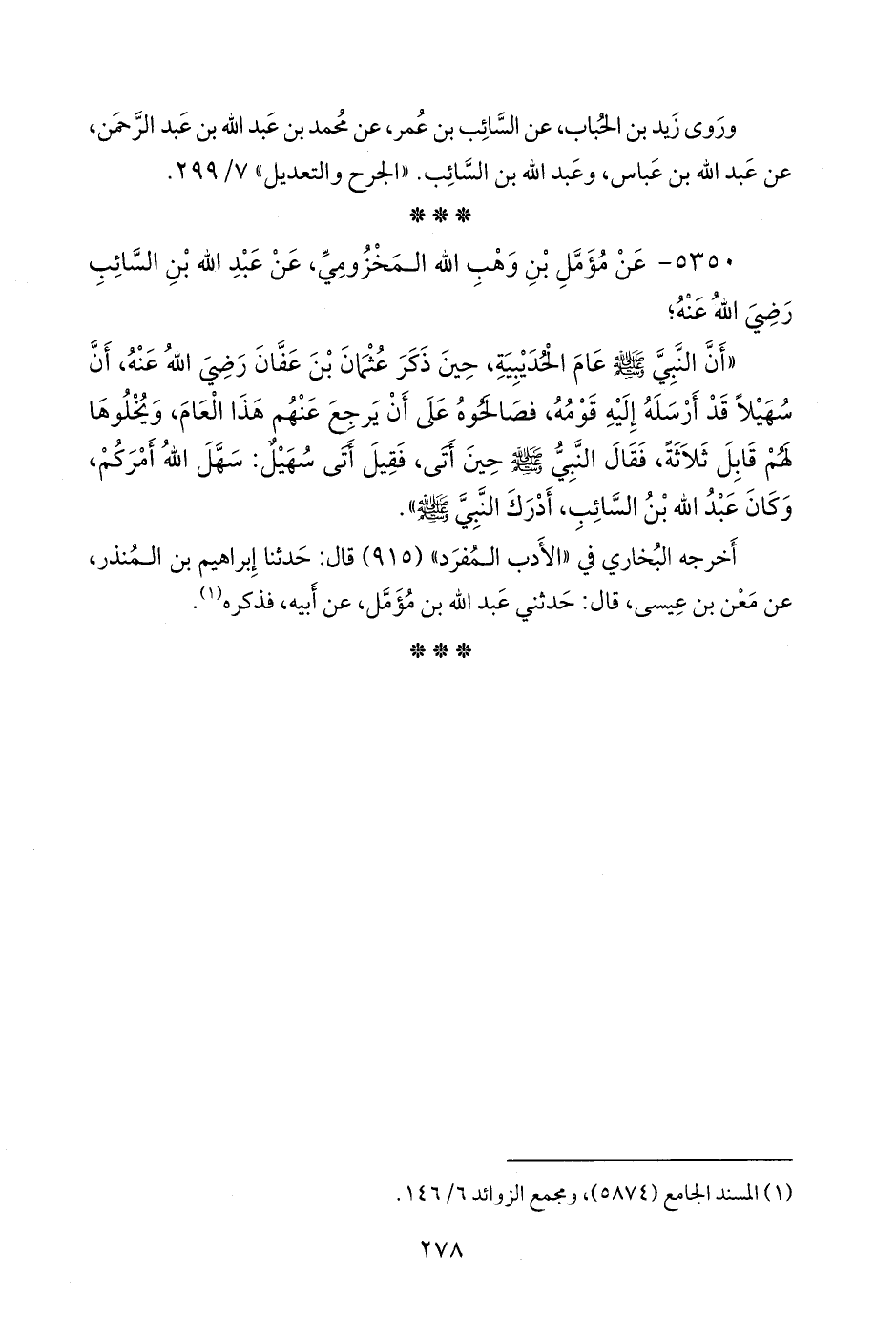 ٥٣٥٠ - عن مُؤَمَّل بن وهب الله المخزومي، عن عبد الله بن السائب رضي الله عنه؛