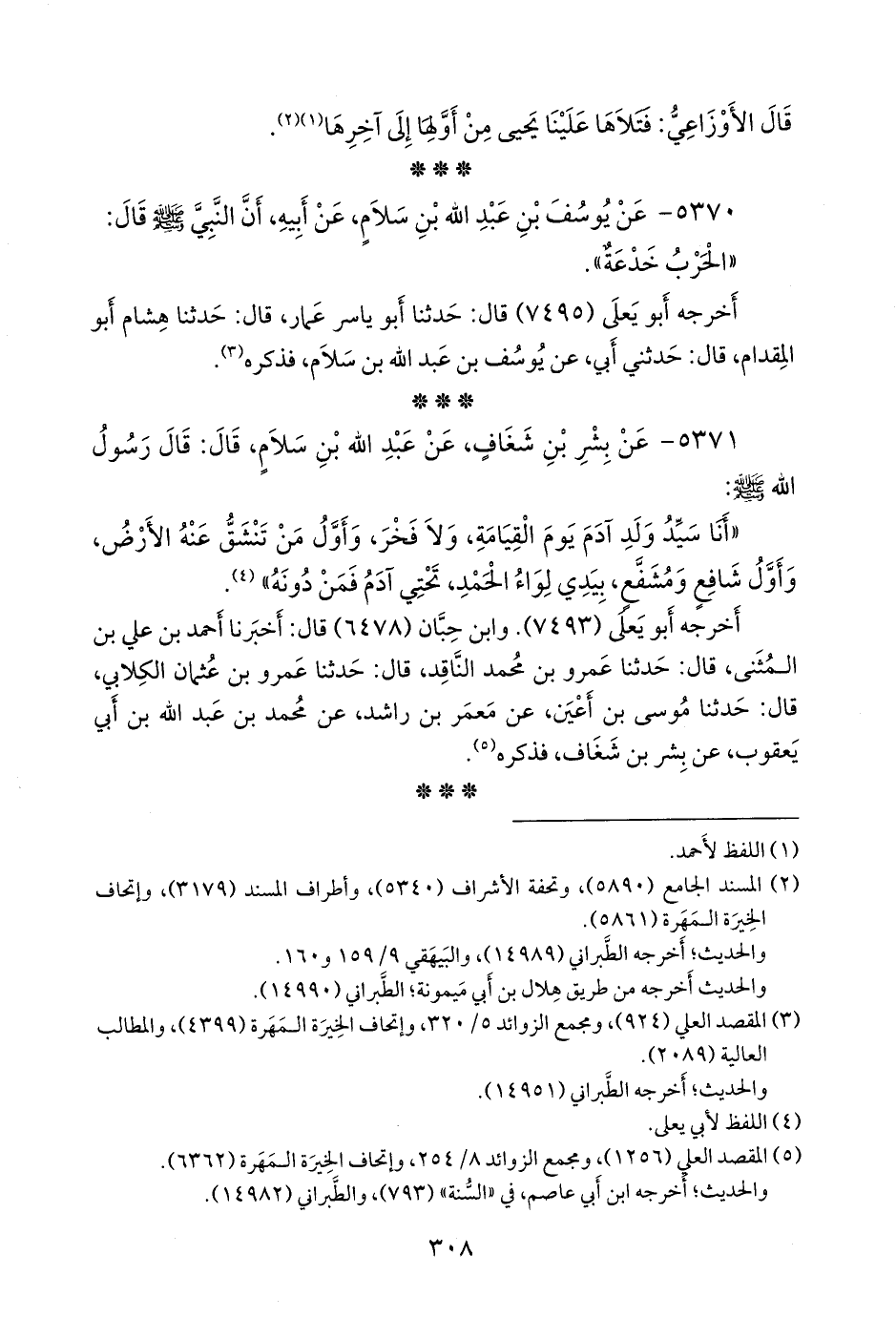 (¬١) المقصد العَلي (٩٢٤)، ومَجمَع الزوائد ٥/ ٣٢٠, وإتحاف الخِيرَة المَهَرة (٤٣٩٩)، والمطالب العالية (٢٠٨٩).