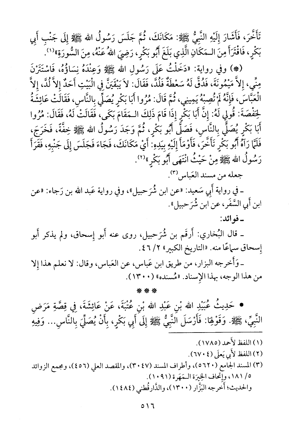 • حديث عُبيد الله بن عبد الله بن عُتبة، عن عائشة، في قصة مرض النبي، صَلى الله عَليه وسَلم. وقولها: فأرسل النبي صَلى الله عَليه وسَلم إلى أَبي بكر، بأن يصلي بالناس ... وفيه