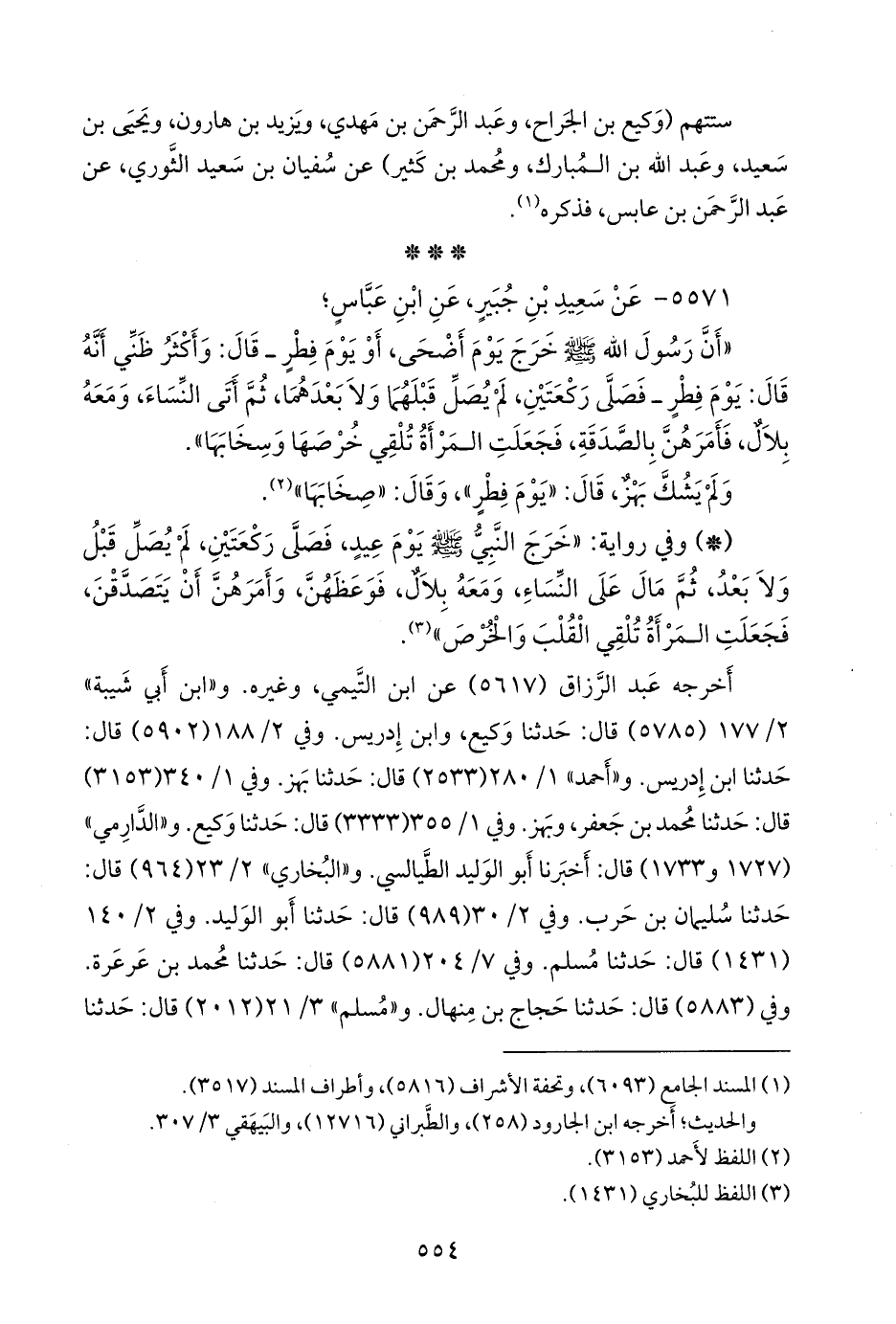 أخرجه عبد الرزاق (٥٦١٧) عن ابن التيمي، وغيره. و «ابن أبي شيبة» (٥٧٨٥) قال: حدثنا وكيع، وابن إدريس. وفي ٢/ ١٨٨ (٥٩٠٢) قال: حدثنا ابن إدريس. و «أحمد» (٢٥٣٣) قال: حدثنا بَهز. وفي ١/ ٣٤٠ (٣١٥٣) قال: حدثنا محمد بن جعفر، وبَهز. وفي ١/ ٣٥٥ (٣٣٣٣) قال: حدثنا وكيع. و «الدَّارِمي» (١٧٢٧ و ١٧٣٣) قال: أخبرنا أَبو الوليد الطيالسي. و «البخاري» ٢/ ١٩ (٩٦٤) قال: حدثنا سليمان بن حرب. وفي ٢/ ٢٤ (٩٨٩) قال: حدثنا أَبو الوليد. وفي ٢/ ١١٣ (١٤٣١) قال: حدثنا مسلم. وفي ٧/ ١٥٨ (٥٨٨١) قال: حدثنا محمد بن عرعرة. وفي (٥٨٨٣) قال: حدثنا حجاج بن مِنهال. و «مسلم» ٣/ ٢١ (٢٠١٢) قال: حدثنا
