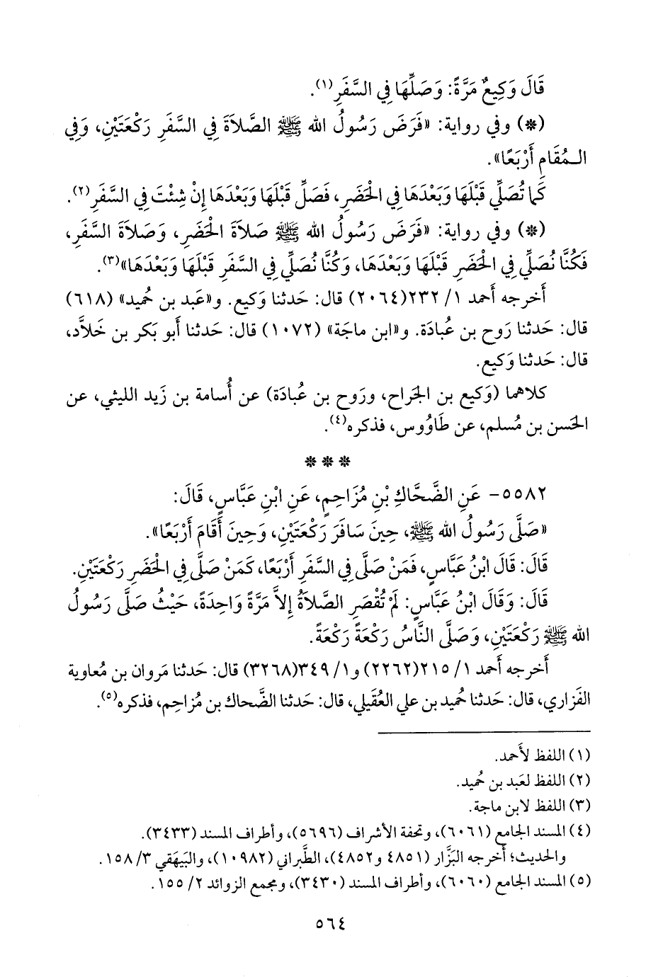 «صلى رسول الله صَلى الله عَليه وسَلم حين سافر ركعتين، وحين أقام أربعا».