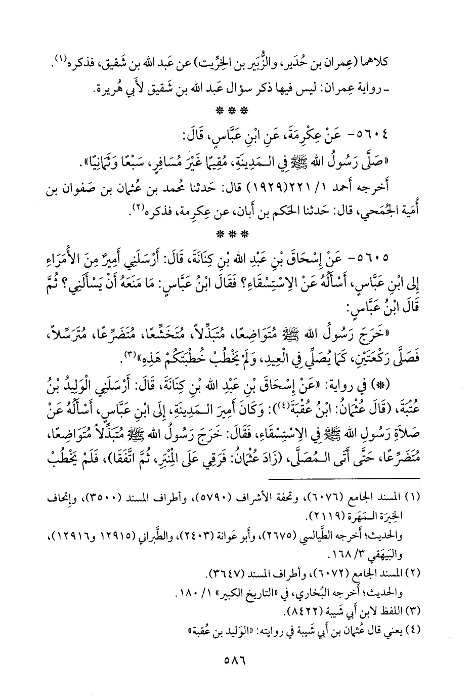 ٥٦٠٥ - عن إسحاق بن عبد الله بن كنانة، قال: أرسلني أمير من الأمراء إلى ابن عباس، أسأله عن الاستسقاء؟ فقال ابن عباس: ما منعه أن يسألني؟ ثم قال ابن عباس: