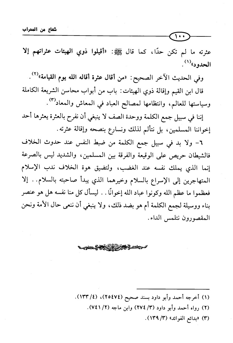 قال ابن القيم وإقالة ذوي الهيئات: باب من أبواب محاسن الشريعة الكاملة وسياستها للعالم، وانتظامها لمصالح العباد في المعاش والمعاد (¬3).