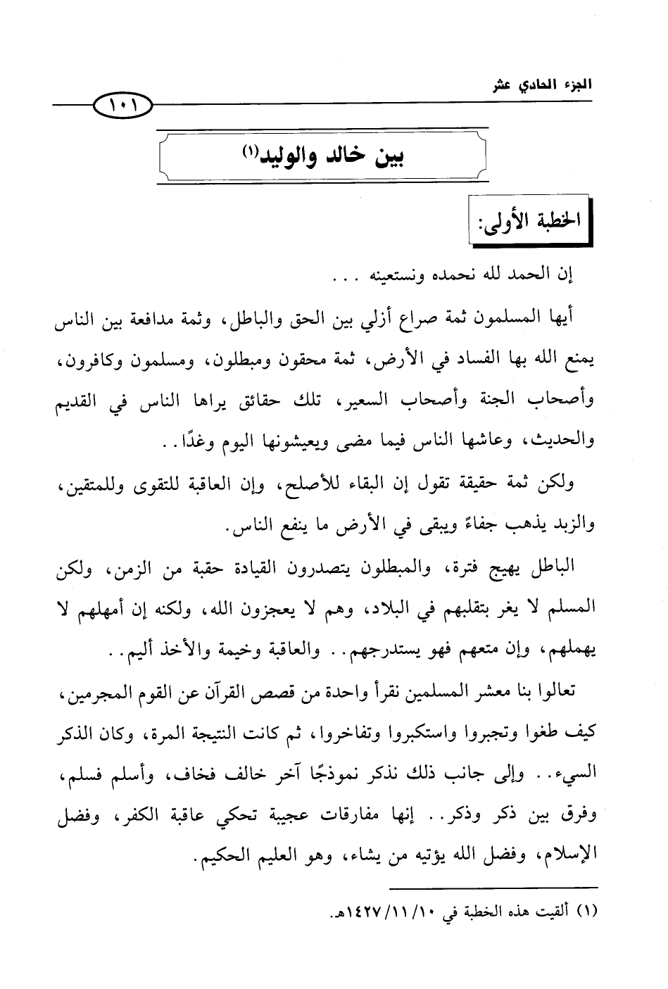 (¬1) ألقيت هذه الخطبة في 10/ 11/ 1427 هـ