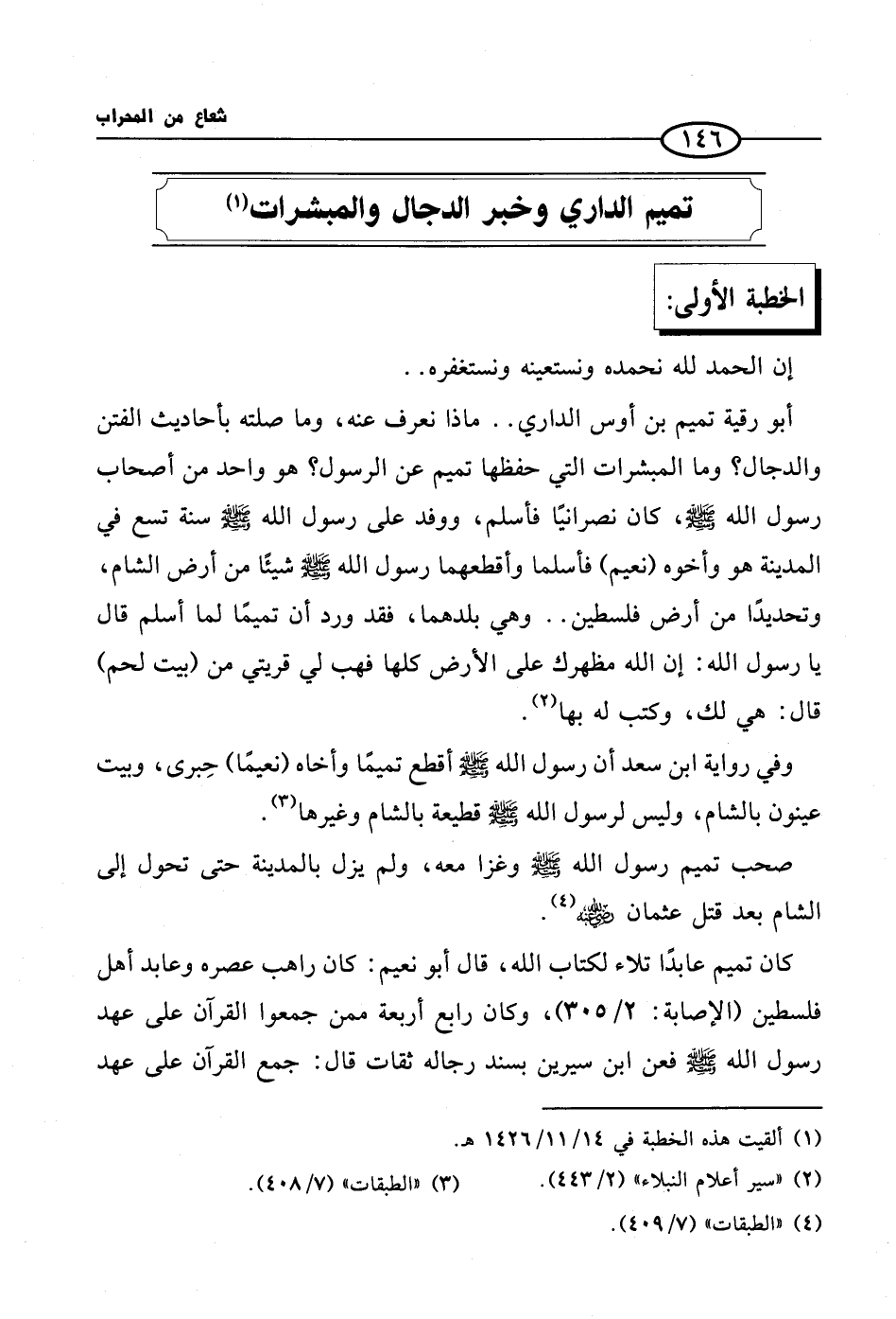 (¬1) ألقيت هذه الخطبة في 14/ 11/ 1426 هـ.
