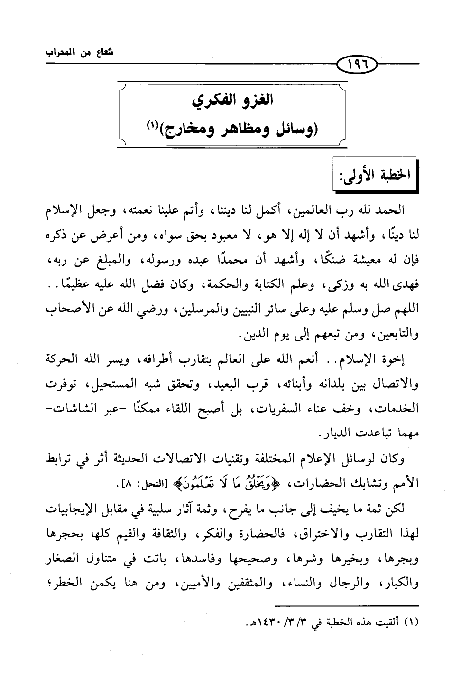 (¬1) ألقيت هذه الخطبة في 3/ 3/ 1430 هـ.