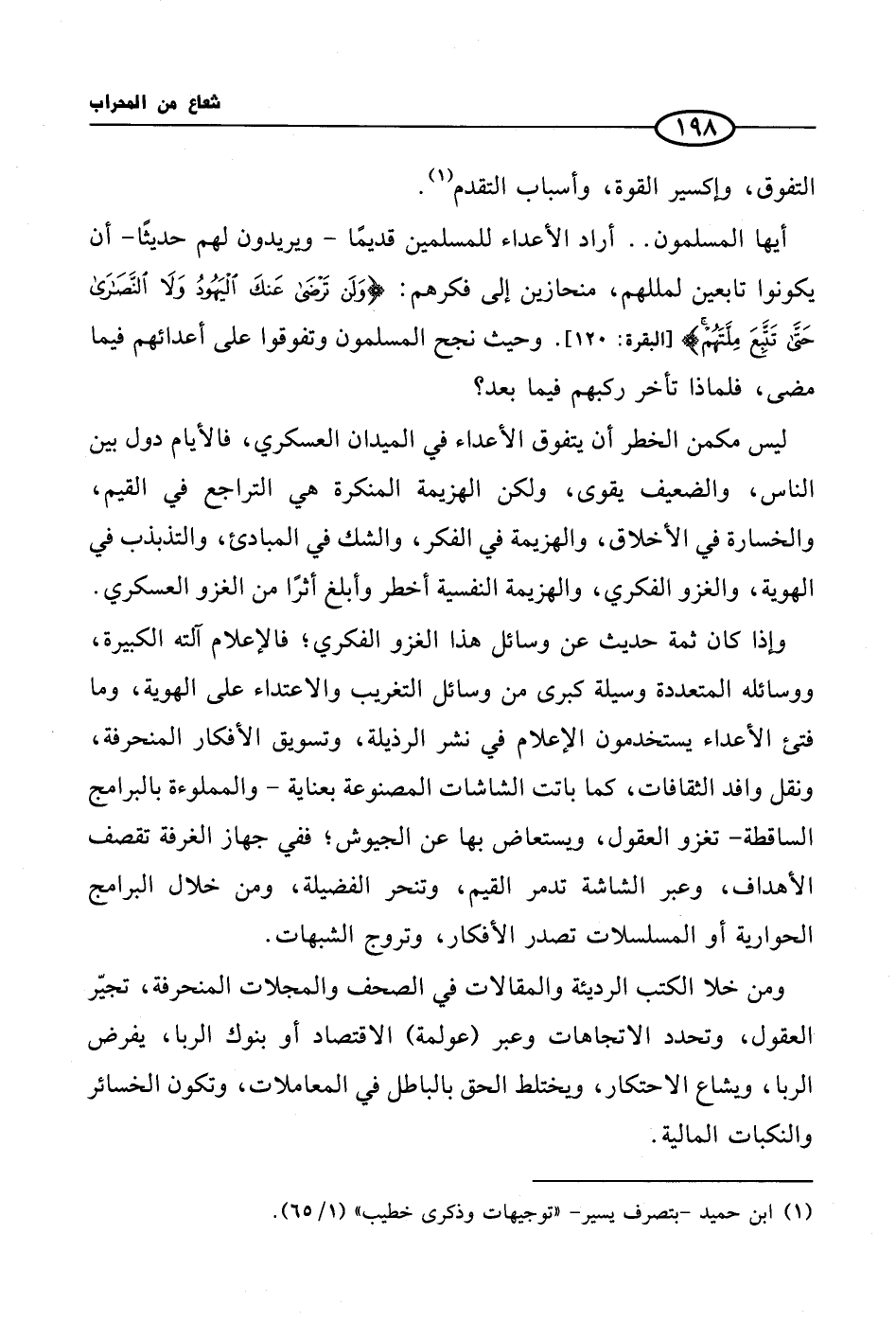 (¬1) (ابن حميد -بتصرف يسير- توجيهات وذكرى (خطيب) 1/ 65).