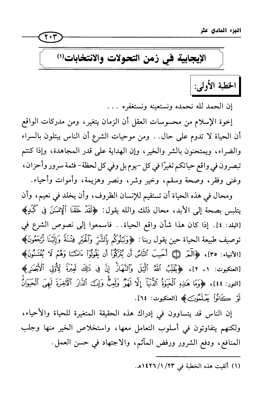 (¬1) ألقيت هذه الخطبة في 23/ 1/ 1426 هـ.
