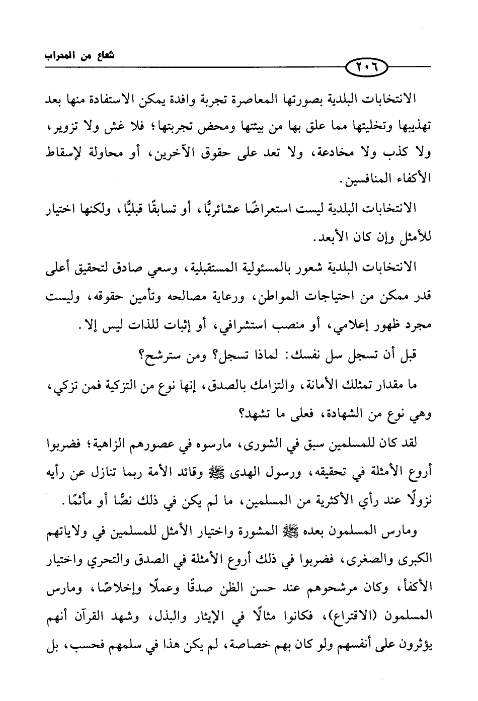 الانتخابات البلدية بصورتها المعاصرة تجربة وافدة يمكن الاستفادة منها بعد تهذيبها وتخليتها مما علق بها من بيئتها ومحض تجربتها؛ فلا غش ولا تزوير، ولا كذب ولا مخادعة، ولا تعد على حقوق الآخرين، أو محاولة لإسقاط الأكفاء المنافسين.