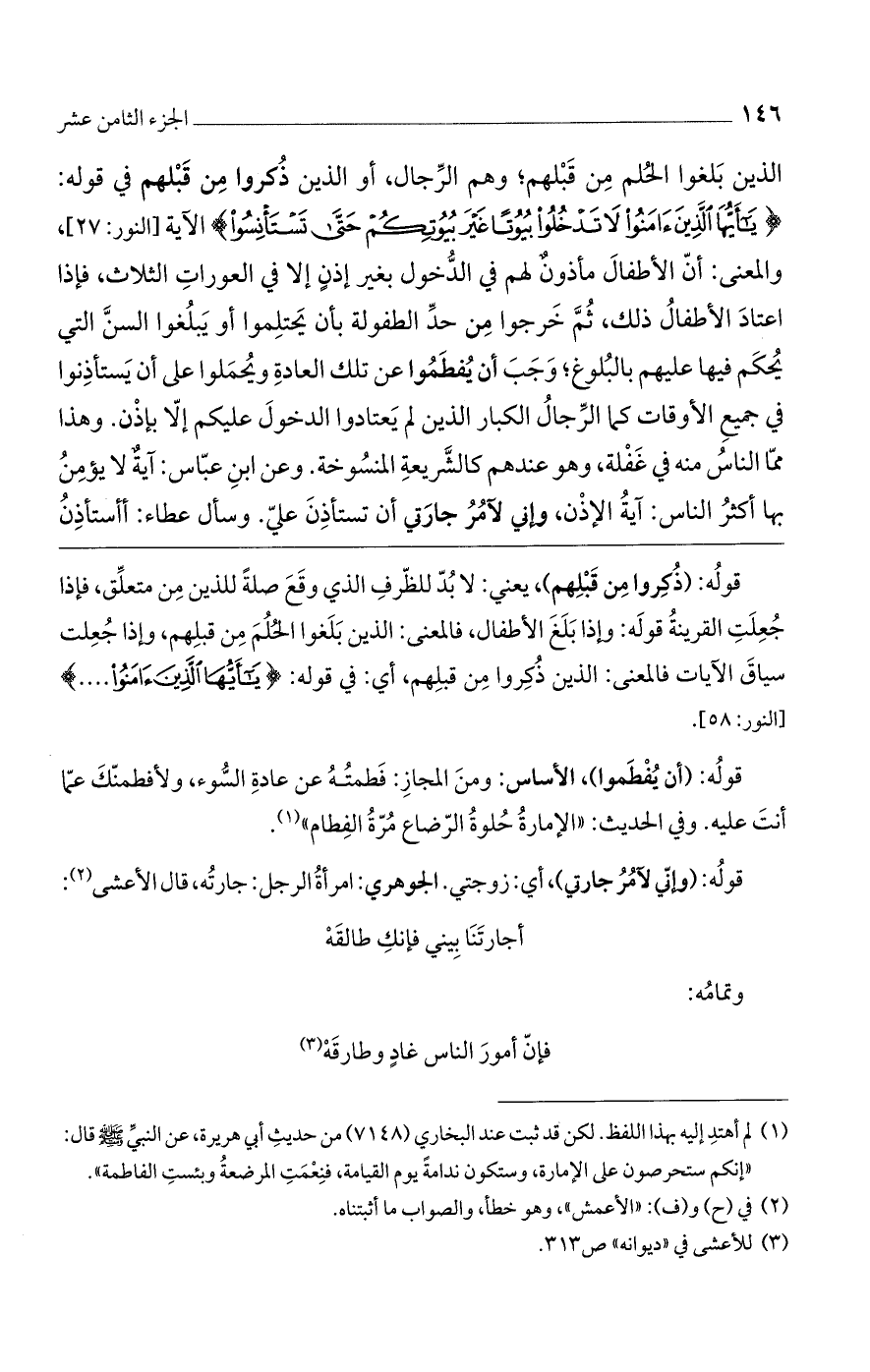 الذين بلغوا الحلم من قبلهم، وهم الرجال، أو الذين ذكروا من قبلهم في قوله: {يَا أَيُّهَا الَّذِينَ آَمَنُوا لَا تَدْخُلُوا بُيُوتًا غَيْرَ بُيُوتِكُمْ حَتَّى تَسْتَانِسُوا} الآية [النور: 27]، والمعنى: أن الأطفال مأذونٌ لهم في الدخول بغير إذنٍ إلا في العورات الثلاث، فإذا اعتاد الأطفال ذلك، ثم خرجوا من حد الطفولة بأن يحتملوا أو يبلغوا السن التي يحكم فيها عليهم بالبلوغ، وجب أن يفطموا عن تلك العادة ويحملوا على أن يستأذنوا في جميع الأوقات كما الرجال الكبار الذين لم يعتادوا الدخول عليكم إلا بإذن. وهذا مما الناس منه في غفلة، وهو عندهم كالشريعة المنسوخة. وعن ابن عباس: آيةٌ لا يؤمن بها أكثر الناس: آية الإذن، وإني لأمر جارتي أن تستأذن علي. وسأل عطاء: أأستأذن