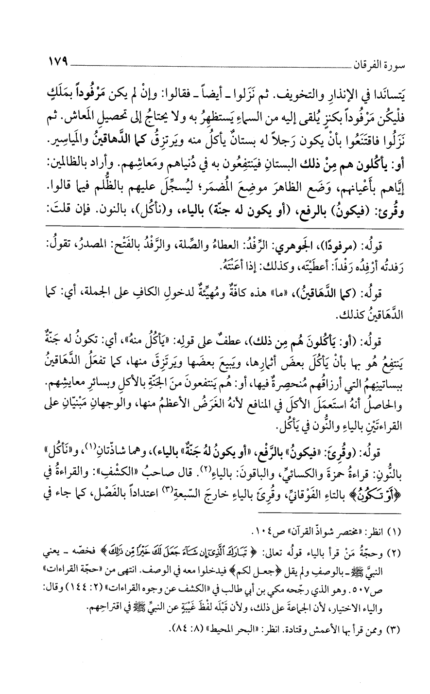 قوله: (وقرئ: "فيكون" بالرفع، "أو يكون له جنةٌ" بالياء)، وهما شاذتان، و"نأكل" بالنون: قراءة حمزة والكسائي، والباقون: بالياء. قال صاحب "الكشف": والقراءة في {أَوْ تَكُونَ} بالتاء الفوقاني، وقرئ بالياء خارج السبعة اعتداداً بالفصل، كما جاء في