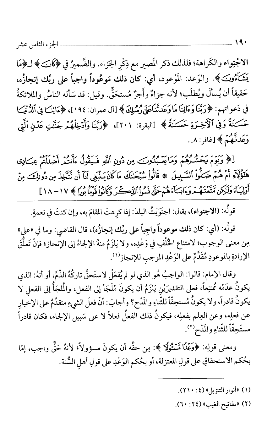 ومعنى قوله: {وَعْدًا مَسْئُولًا}: من حقه أن يكون مسؤولاً، لأنه حقٌ واجب. بحكم الاستحقاق على قول المعتزلة، أو بحكم الوعد على قول أهل السنة.