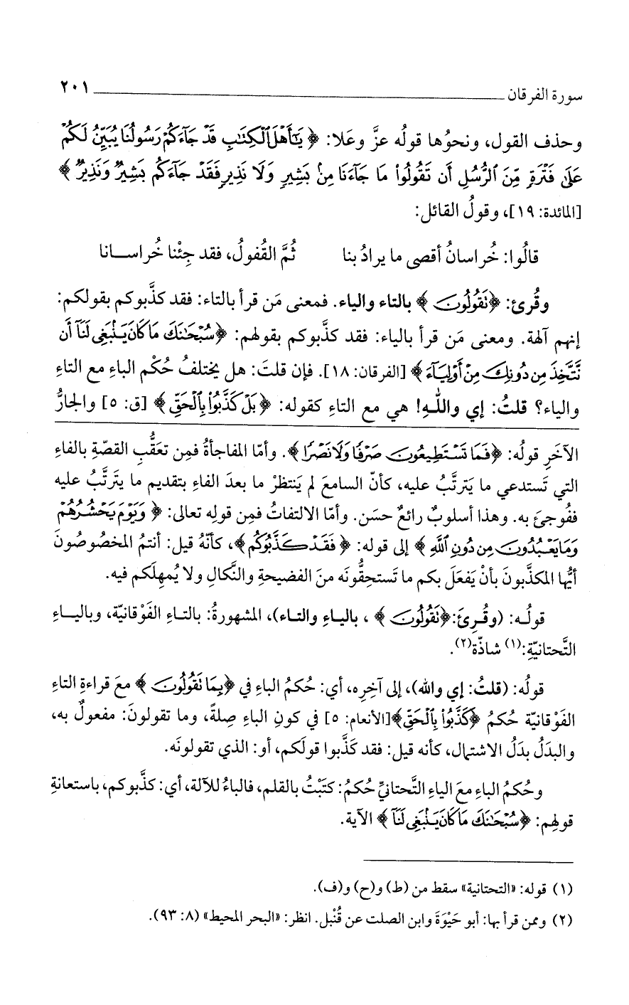 قوله: (وقرئ: {تَقُولُونَ}، بالياء والتاء)، المشهورة: بالتاء الفوقانية، وبالياء التحتانية: شاذة.