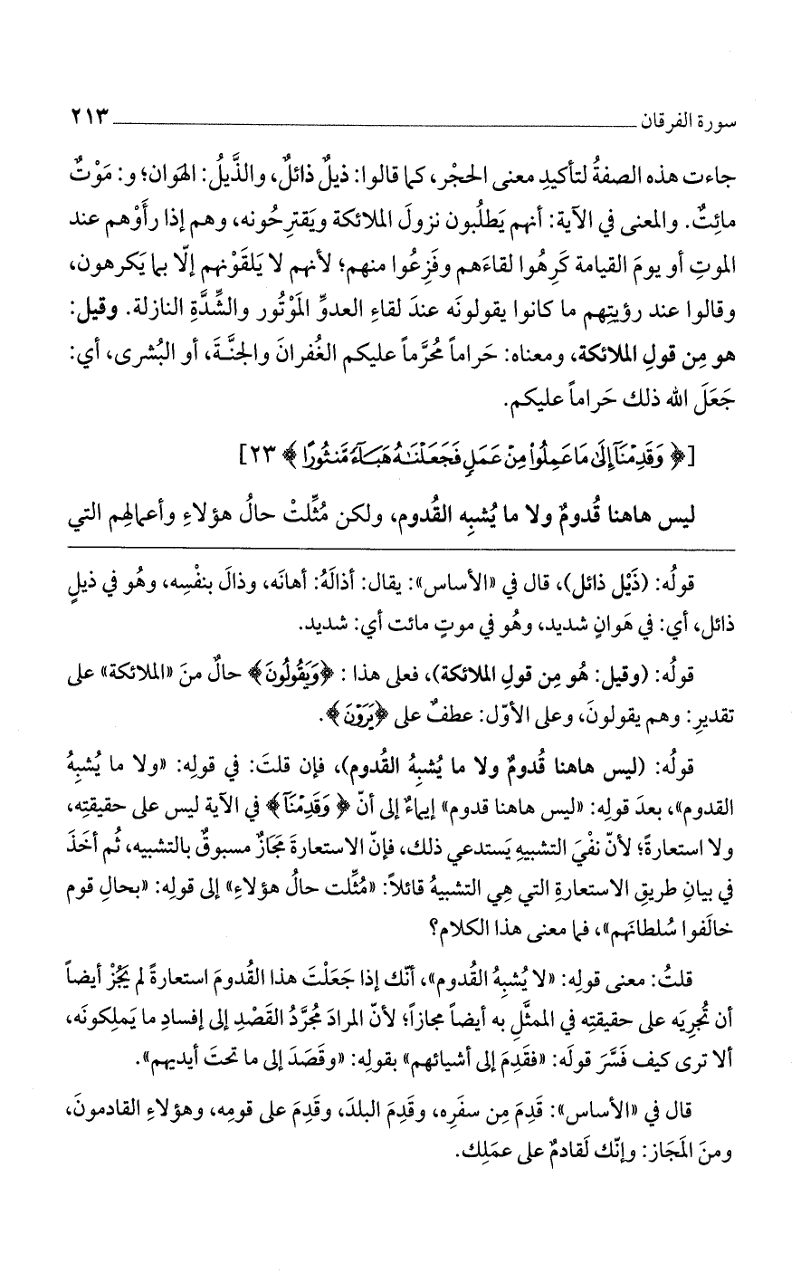 قوله: (ليس هاهنا قدومٌ ولا ما يشبه القدوم)، فإن قلت: في قوله: "ولا ما يشبه القدوم"، بعد قوله: "ليس هاهنا قدوم" إيماءٌ إلى أن {وَقَدِمْنَا} في الآية ليس على حقيقته، ولا استعارةً، لأن نفي التشبيه يستدعي ذلك، فإن الاستعارة مجازٌ مسبوقٌ بالتشبيه، ثم أخذ في بيان طريق الاستعارة التي هي التشبيه قائلاً: "مثلت حال هؤلاء" إلى قوله: "بحال قوم خالفوا سلطانهم"، فما معنى هذا الكلام؟