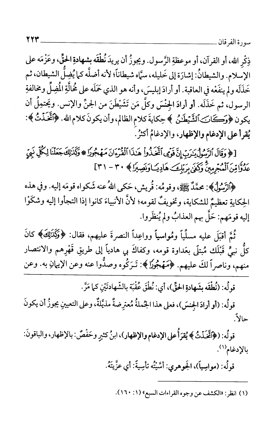 [(وَقالَ الرَّسُولُ يا رَبِّ إِنَّ قَوْمِي اتَّخَذُوا هذَا الْقُرْآنَ مَهْجُوراً* وكَذَلِكَ جَعَلْنَا لِكُلِّ نَبِيٍّ عَدُوًا مِّنَ المُجْرِمِينَ وكَفَى بِرَبِّكَ هَادِيًا ونَصِيرًا)].