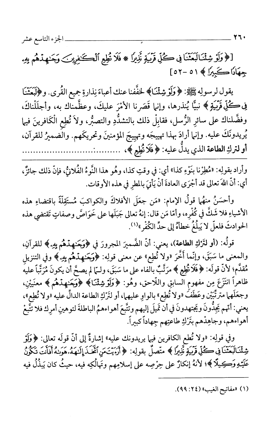 [(وَلَوْ شِئْنا لَبَعَثْنا فِي كُلِّ قَرْيَةٍ نَذِيراً* فَلا تُطِعِ الْكافِرِينَ وَجاهِدْهُمْ بِهِ جِهاداً كَبِيراً)].