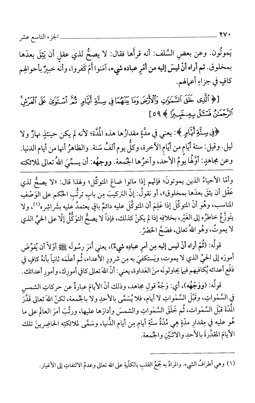 [(الَّذِي خَلَقَ السَّماواتِ وَالْأَرْضَ وَما بَيْنَهُما فِي سِتَّةِ أَيَّامٍ ثُمَّ اسْتَوى عَلَى الْعَرْشِ الرَّحْمنُ فَسْئَلْ بِهِ خَبِيراً)].