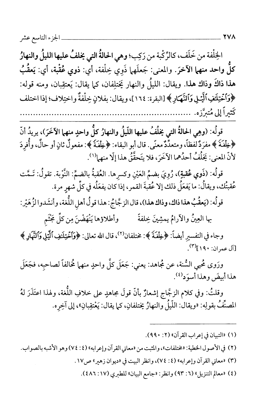 قوله: (يعقب هذا ذاك، وذاك هذا)، قال الزجاج: هذا قول أهل اللغة، وأنشدوا لزهير: