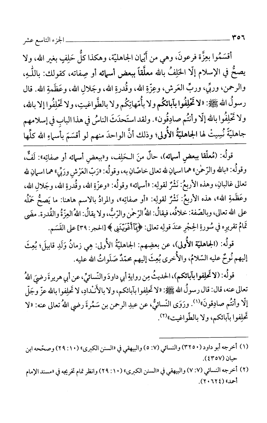 قوله: (لا تحلفوا بآبائكم)، الحديث من رواية أبي داود والنسائي، عن أبي هريرة رضي الله تعالى عنه، قال: قال رسول الله - صلى الله عليه وسلم -: "لا تحلفوا بآبائكم، ولا بالأنداد، لا تحلفوا بالله عز وجل إلا وأنتم صادقون". وروى النسائي، عن عبد الرحمن بن سمرة رضي الله تعالى عنه: "لا تحلفوا بآبائكم، ولا بالطواغيت".