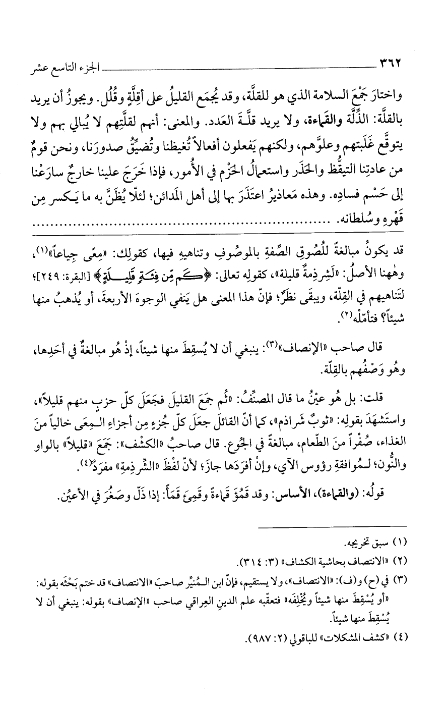 واختار جمع السلامة الذي هو للقلة، وقد يجمع القليل على أقلة وقلل. ويجوز أن يريد بالقلة: الذلة والقماءة، ولا يريد قلة العدد. والمعنى: أنهم لقلتهم لا يبالي بهم ولا يتوقع غلبتهم وعلوهم، ولكنهم يفعلون أفعالا تغيظنا وتضيق صدورنا، ونحن قوم من عادتنا التيقظ والحذر واستعمال الحزم في الأمور، فإذا خرج علينا خارج، سارعنا إلى حسم فساده، وهذه معاذير اعتذر بها إلى أهل المدائن، لئلا يظنّ به ما يكسر من قهره وسلطانه ......