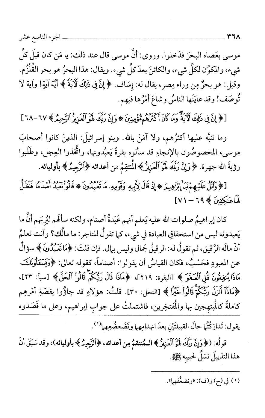 وما تنبه عليها أكثرهم، ولا آمن بالله. وبنو إسرائيل: الذين كانوا أصحاب موسى، المخصوصون بالإنجاء قد سألوه بقرة يعبدونها، واتخذوا العجل، وطلبوا رؤية الله جهرة. (وَإِنَّ رَبَّكَ لَهُوَ الْعَزِيزُ) المنتقم من أعدائه (الرَّحِيمُ) بأوليائه.