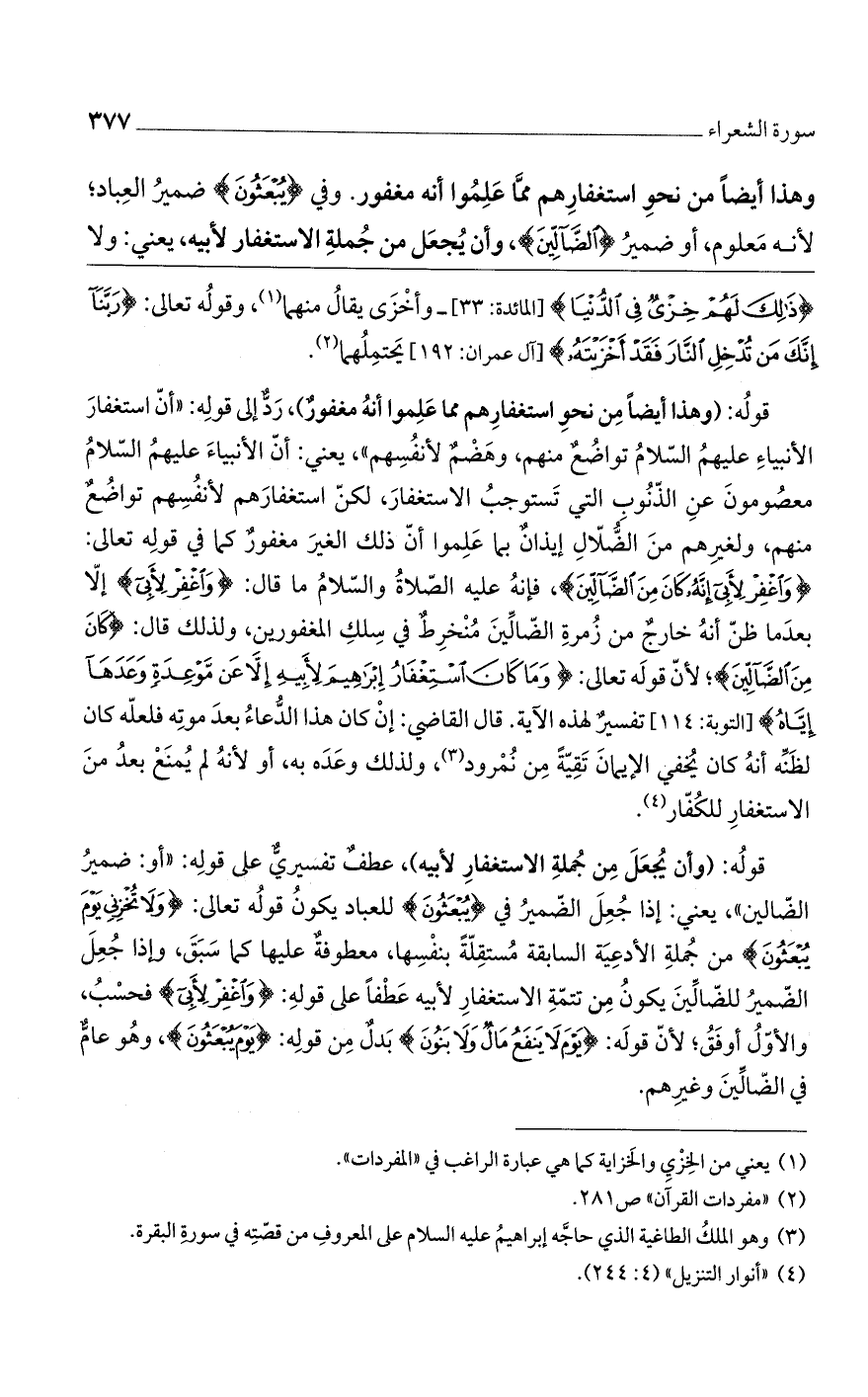 وهذا أيضا من نحو استغفارهم مما علموا أنه مغفور وفي (يُبْعَثُونَ) ضمير العباد، لأنه معلوم. أو ضمير (الضَّالِّينَ). وأن يجعل من جملة الاستغفار لأبيه، يعني: ولا