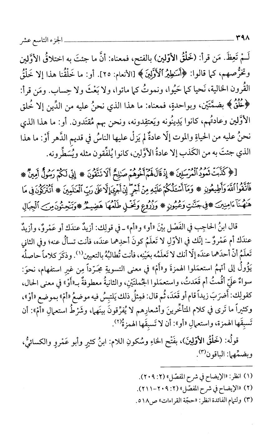 قوله: (خلق الأولين)، بفتح الخاء وسكون اللام: ابن كثيرٍ وأبو عمروٍ والكسائي، وبضمهما: الباقون.