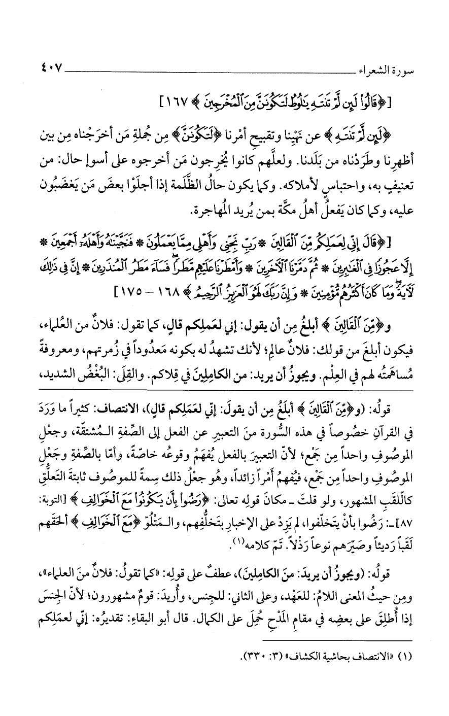 قوله: (ويجوز أن يريد: من الكاملين)، عطفٌ على قوله: "كما تقول: فلانٌ من العلماء"، ومن حيث المعنى اللام: للعهد، وعلى الثاني: للجنس، وأريد: قومٌ مشهورون، لأن الجنس إذا أطلق على بعضه في مقام المدح حمل على الكمال. قال أبو البقاء: تقديره: إني لعملكم