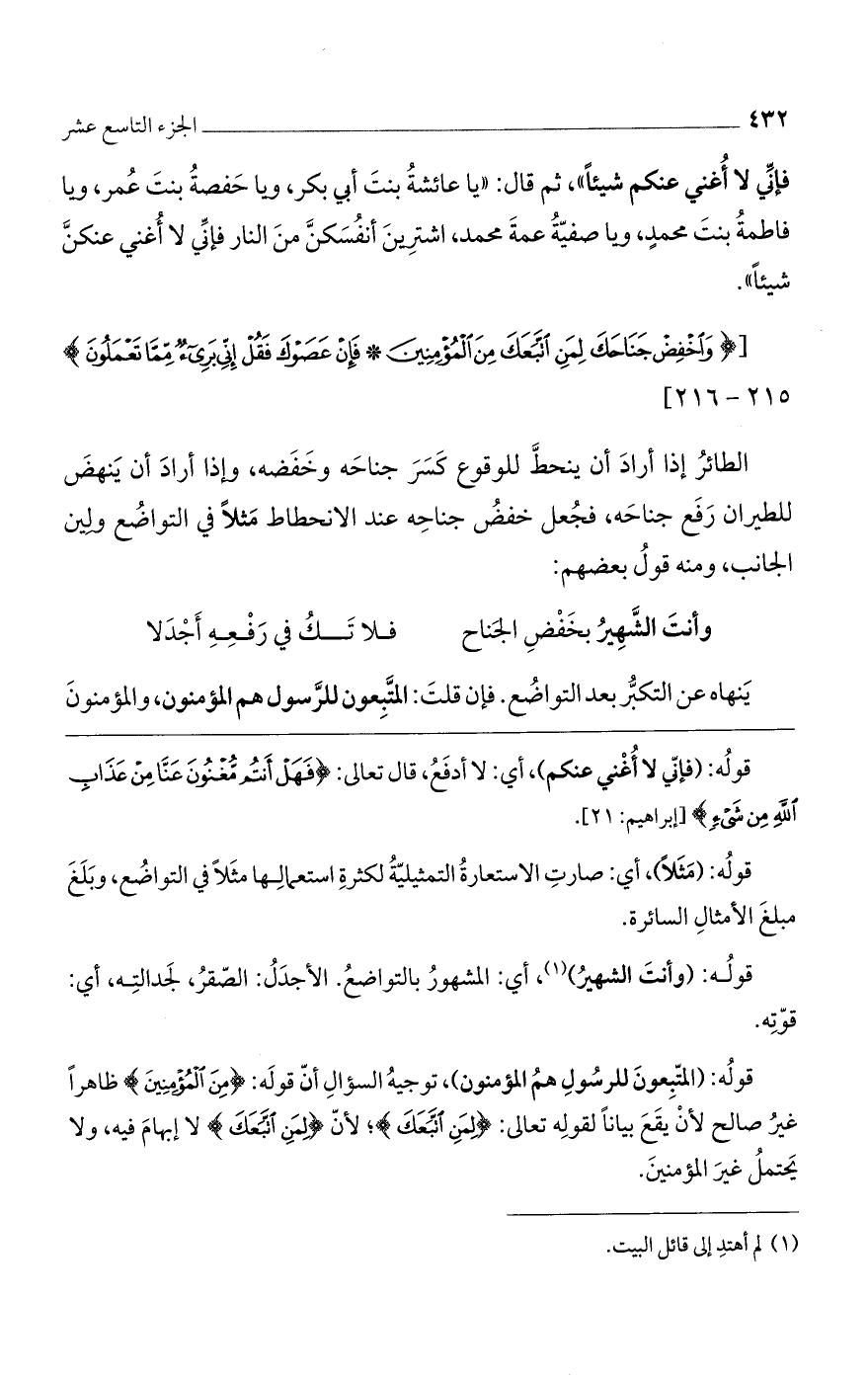 [(وَاخْفِضْ جَناحَكَ لِمَنِ اتَّبَعَكَ مِنَ الْمُؤْمِنِينَ (215) فَإِنْ عَصَوْكَ فَقُلْ إِنِّي بَرِيءٌ مِمَّا تَعْمَلُونَ)].