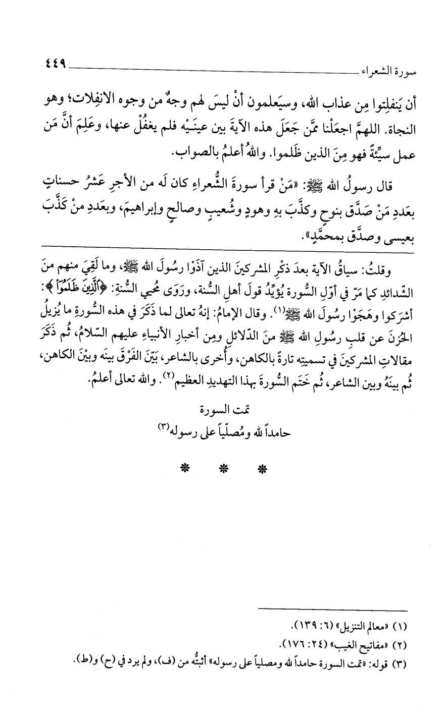 قال رسول الله صلى الله عليه وسلم: "من قرأ سورة الشعراء كان له من الأجر عشر حسنات بعدد من صدق بنوح وكذب به وهود وشعيب وصالح وإبراهيم وبعدد من كذب بعيسى وصدق بمحمد".