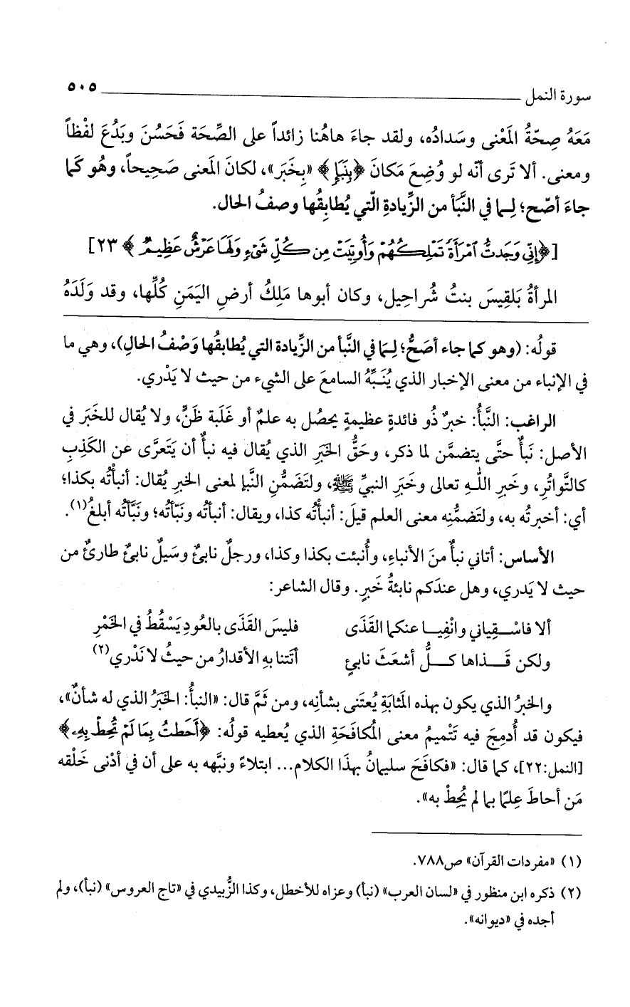 والخبر الذي يكون بهذه المثابة يعتني بشأنه، ومن ثم قال: "النبأ: الخبر الذي له شأنٌ"، فيكون قد أدمج فيه تتميم معنى المكافحة الذي يعطيه قوله: {أَحَطتُ بِمَا لَمْ تُحِطْ بِهِ} [النمل: 22]، كما قال: "فكافح سليمان بهذا الكلام ... ابتلاءً ونبهه به على أن في أدنى خلقه من أحاط علمًا بما لم يحط به".