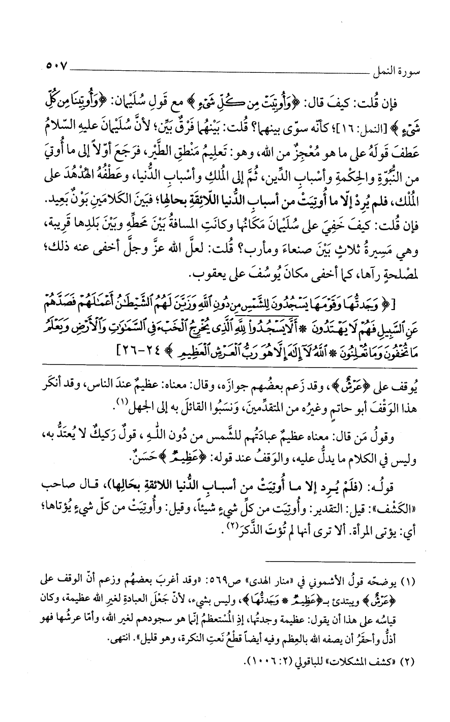 [(وَجَدْتُها وَقَوْمَها يَسْجُدُونَ لِلشَّمْسِ مِنْ دُونِ اللَّهِ وَزَيَّنَ لَهُمُ الشَّيْطانُ أَعْمالَهُمْ فَصَدَّهُمْ عَنِ السَّبِيلِ فَهُمْ لا يَهْتَدُونَ (24) أَلاَّ يَسْجُدُوا لِلَّهِ الَّذِي يُخْرِجُ الْخَبْءَ فِي السَّماواتِ وَالْأَرْضِ وَيَعْلَمُ ما تُخْفُونَ وَما تُعْلِنُونَ (25) اللَّهُ لا إِلهَ إِلاَّ هُوَ رَبُّ الْعَرْشِ الْعَظِيمِ)].