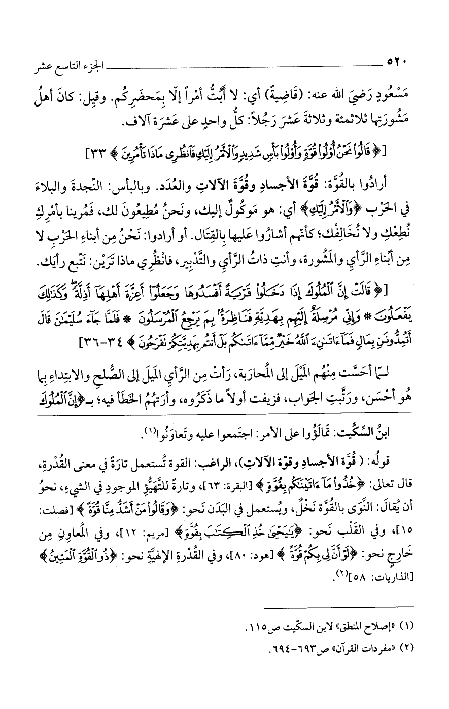 (قالُوا نَحْنُ أُولُوا قُوَّةٍ وَأُولُوا بَاسٍ شَدِيدٍ وَالْأَمْرُ إِلَيْكِ فَانْظُرِي ماذا تَامُرِينَ) [النمل: 33].