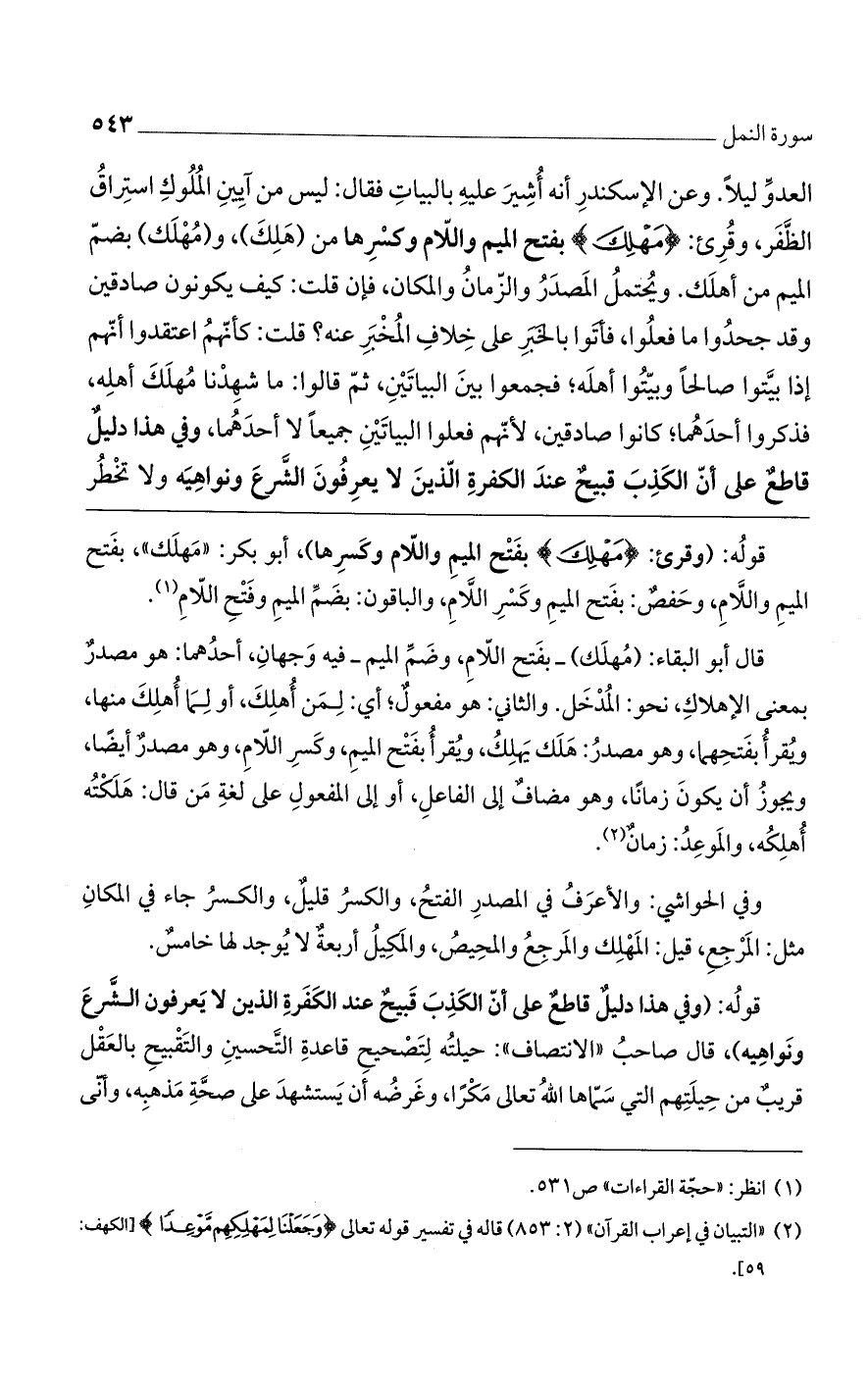 قوله: (وقرئ: {مُهْلِكَ} بفتح الميم واللام وكسرها)، أبو بكر: "مهلك"، بفتح الميم واللام، وحفصٌ: بفتح الميم وكسر اللام، والباقون: بضم الميم وفتح اللام.