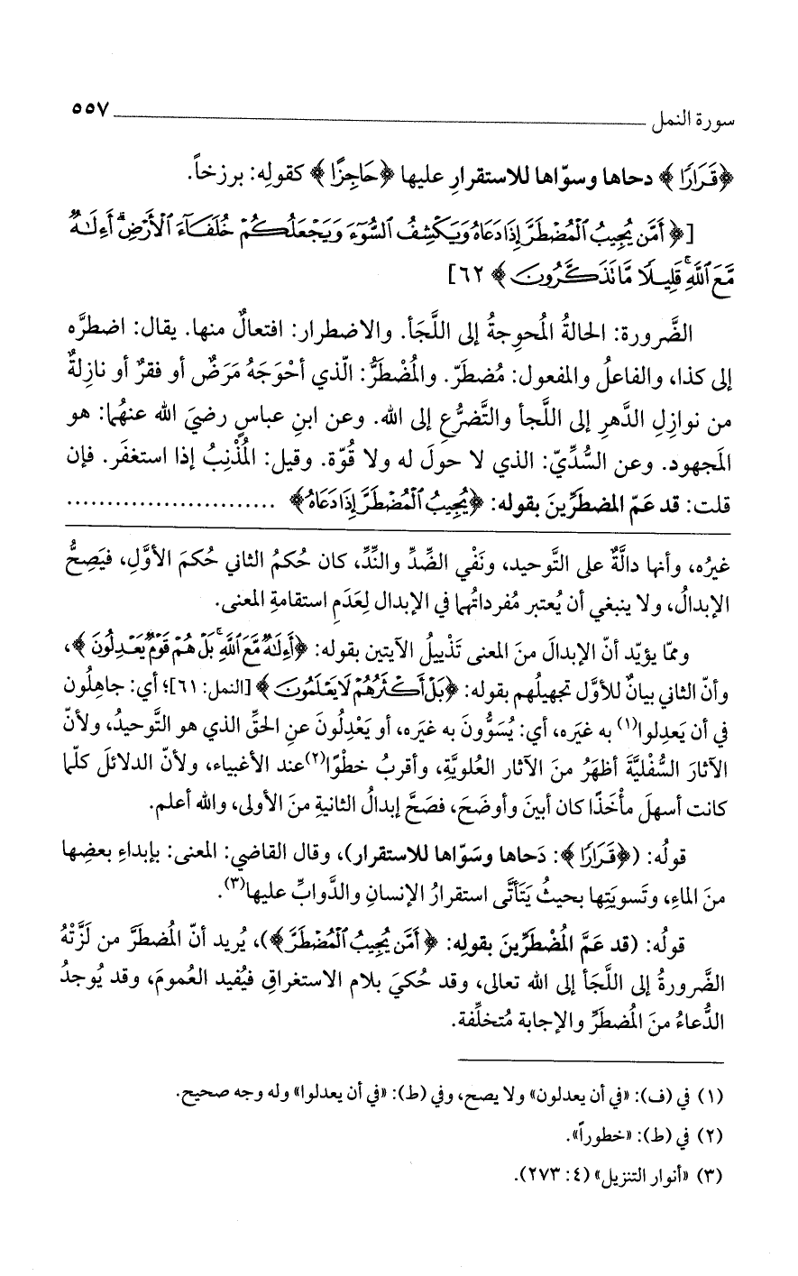قوله: (قد عم المضطرين بقوله: {أَمَّنْ يُجِيبُ الْمُضْطَرَّ})، يريد أن المضطر من لزته الضرورة إلى اللجأ إلى الله تعالى، وقد حكي بلام الاستغراق فيفيد العموم، وقد يوجد الدعاء من المضطر والإجابة متخلفة.